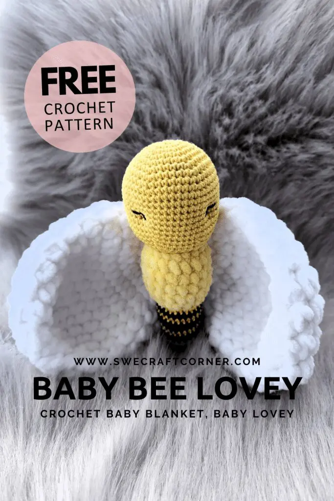 This is my Bee lovey pattern. It’s so adorable and easy for a child to hold and carry. This crocheted baby comforter will help the child feel secure and beloved. And makes for some super cute baby photos! It’s made with a super soft chenille yarn and cotton yarn.