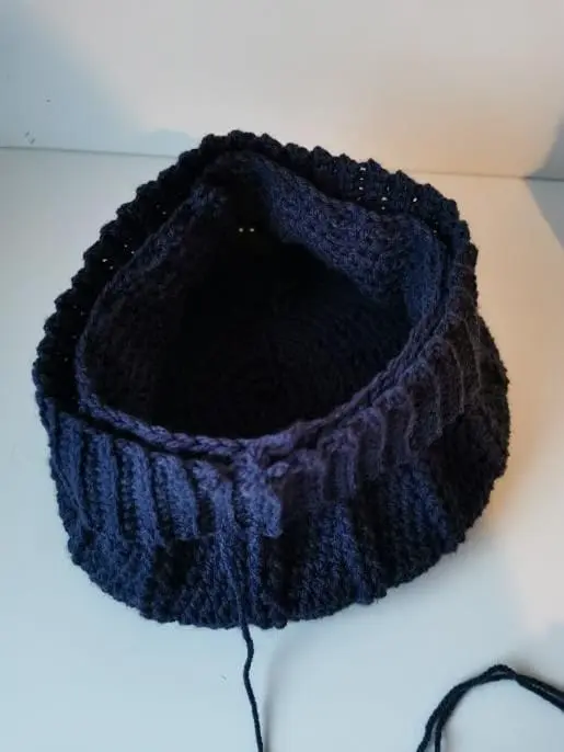 The ribbed edge and the hat is made separately.